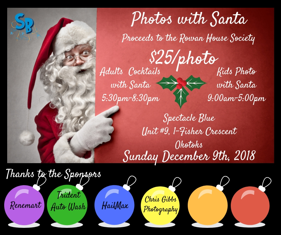 Specatcle Blue is hosting a Photos With Santa day on December 9th with proceeds going to the Rowan House Society.